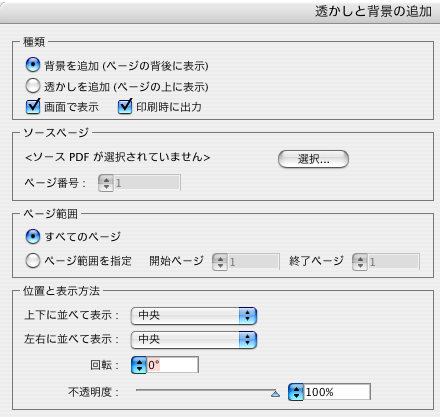 - 「文書→背景の追加」を選択し、下図のような設定にします。