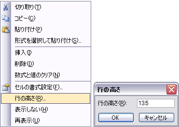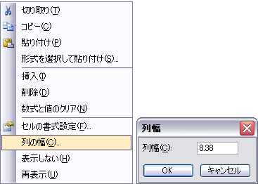 サイズの単位excelにはドキュメントサイズという概念はありませんが、「列」や「行」のサイズを設定することができます。しかし、設定画面を開いてみても、数値だけで単位は表記されません。 【行の高さ=単位:ポイント】初期状態の行の高さは13.5ポイント(約4.725mm)になっています。 ![]() 【列の幅=標準スタイルでの半角文字数】 mm表記に慣れている方は、こちらは分かりにくい表記かもしれません。 ※初期状態での列の幅は「8.38」に設定されていますが、これは「標準フォントの半角文字が8.38文字表示できる」という意味です。 ![]() 標準スタイル