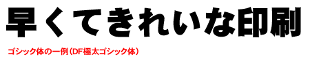書体の一種。明朝体や楷書と異なり、縦画と横画の太さが均等なのが特徴。そのためインキ面が広く、視覚的訴求性の高い(目立ちやすい)特性をもっています。