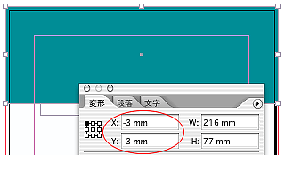 Indesignで塗り足しを作るには、ドキュメントサイズの外側に3mmずつ塗り幅を広げる必要があります【右図参照】。