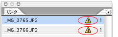 (リンクパレットで画像名の横に「!」がでていない状態)
